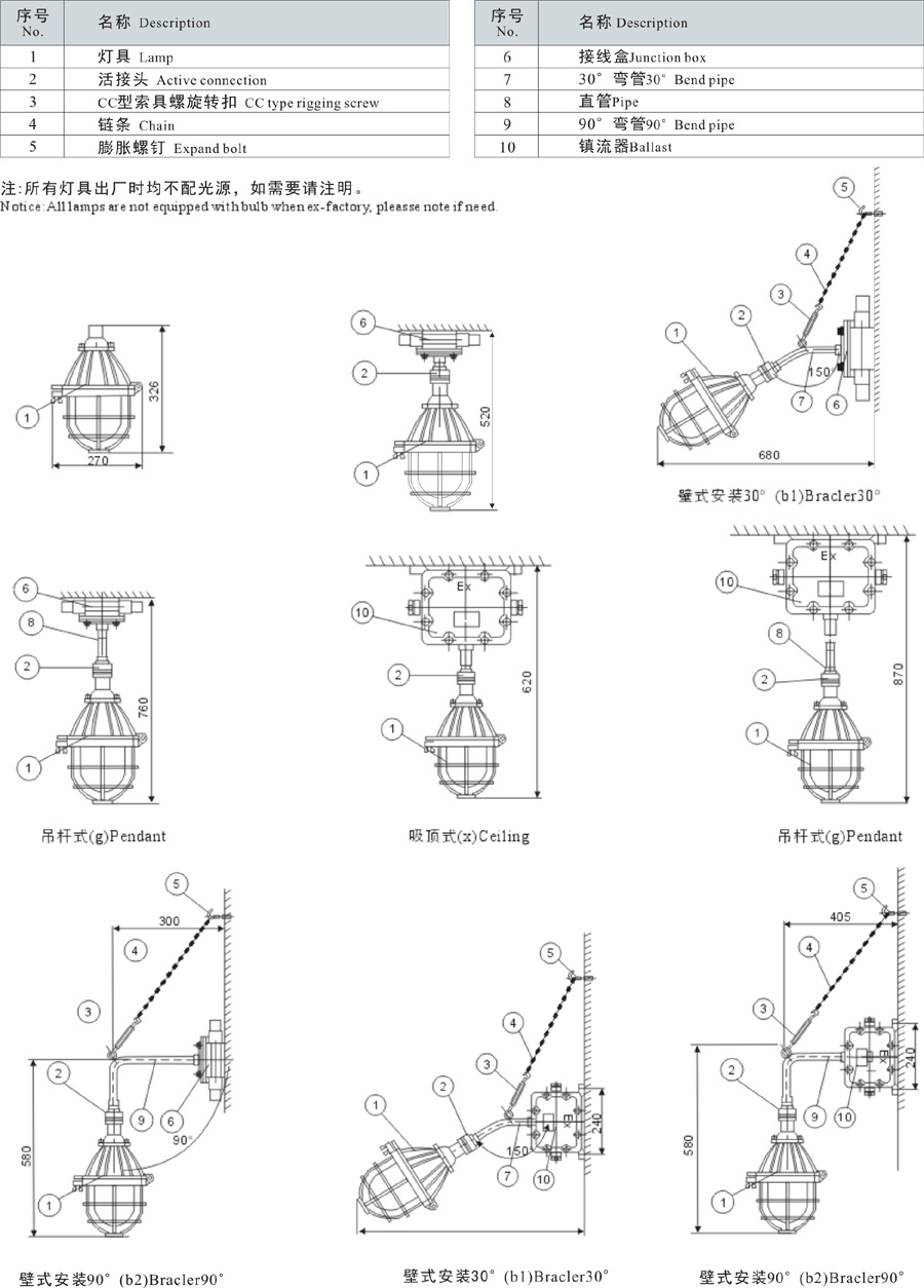 注:可按用戶要求配裝燈傘。