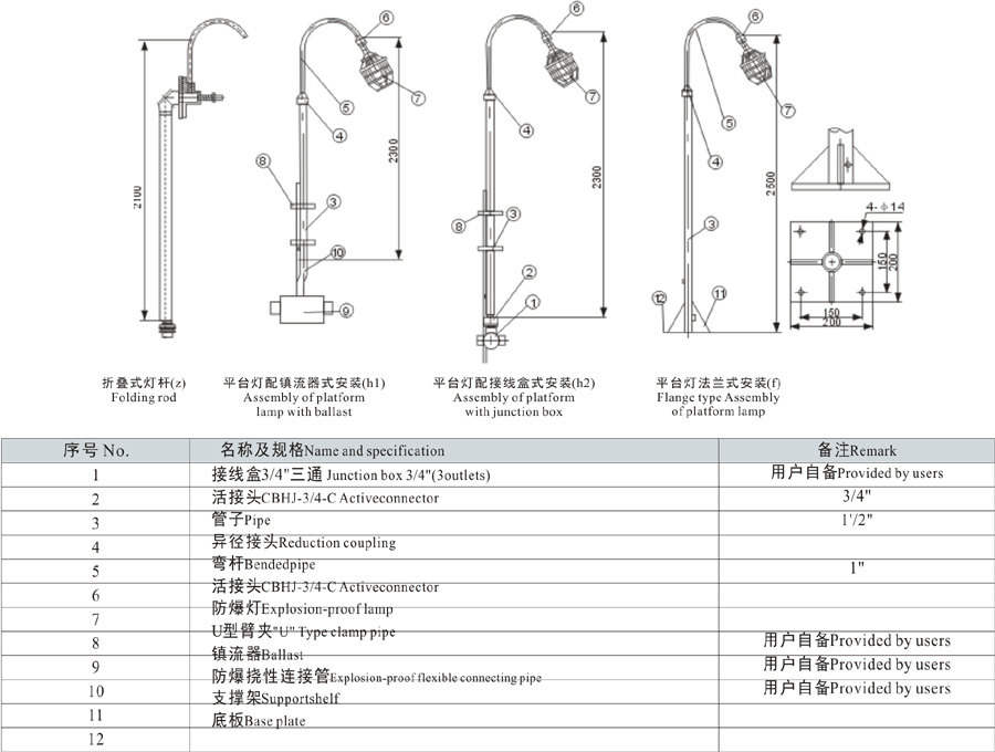 3、01、02、05、06型可根據(jù)用戶要求配裝燈傘。