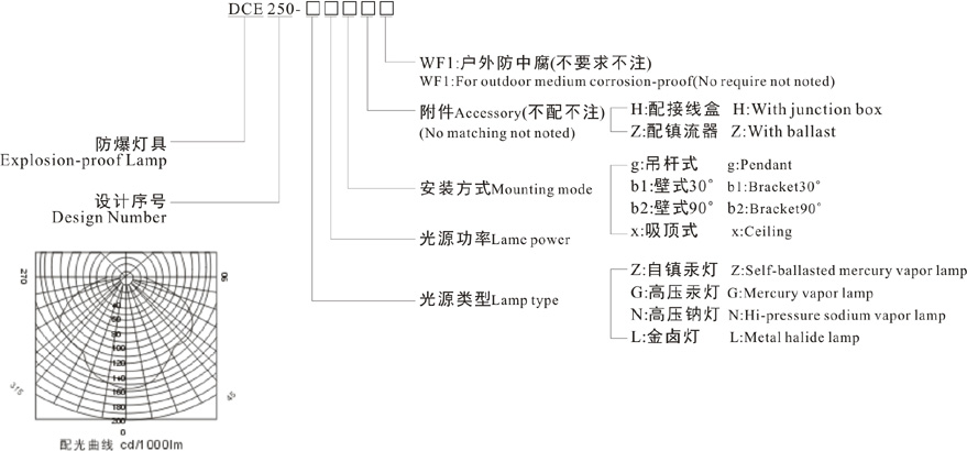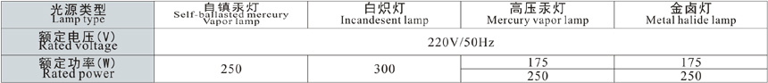 4、可配裝白熾燈、汞燈、金鹵燈。