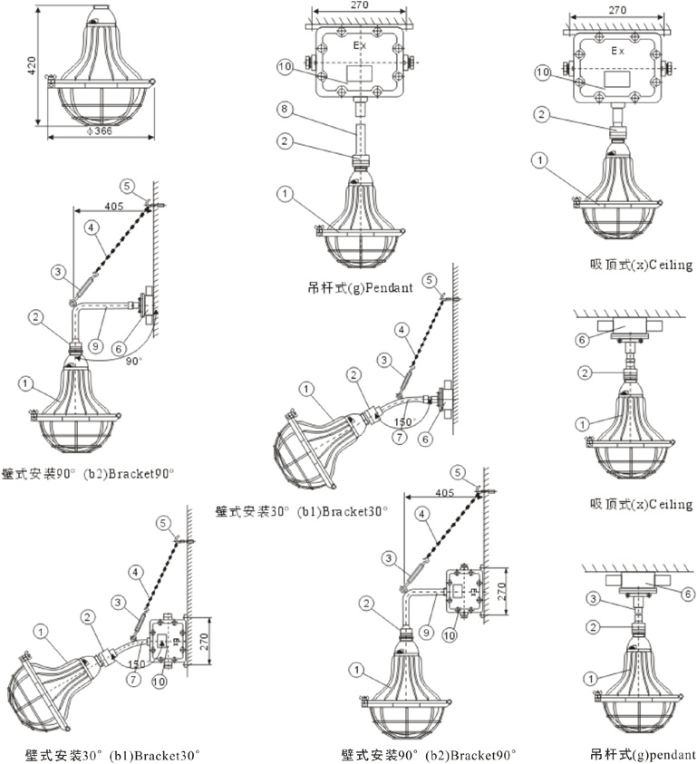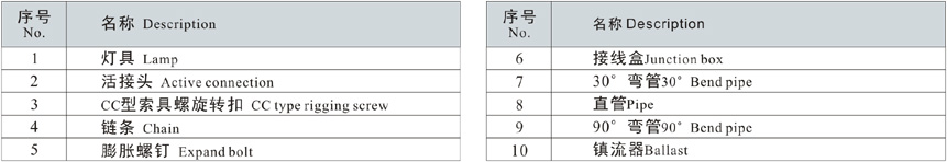 注:所有燈具出廠時(shí)均不配光源,如需要請注明。