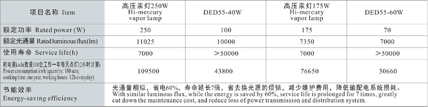 Luminous efficacy of the incandescent lamp is 7~14lm/W, that of fluorescent lamp is 50~80lm/W, that of HV sodium lamp is 80~12lm/W,most of the power consumption turns into thermal loss. Luminous efficacy of the LED reaches 90~120lm/W, with good monochromaticity,narrow light spectrum, optional color temperature and good color rendering property.